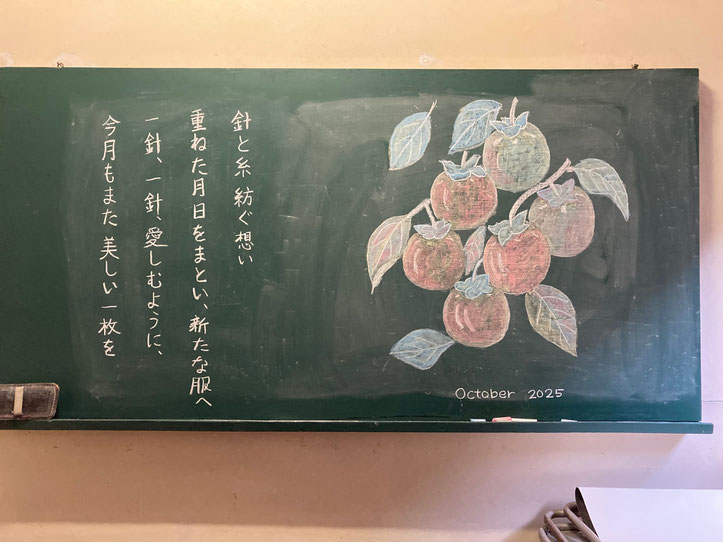 10月の洋裁メッセージは、柿の実が色づく美しい風景からインスピレーションを得て、こんな詩にしました。